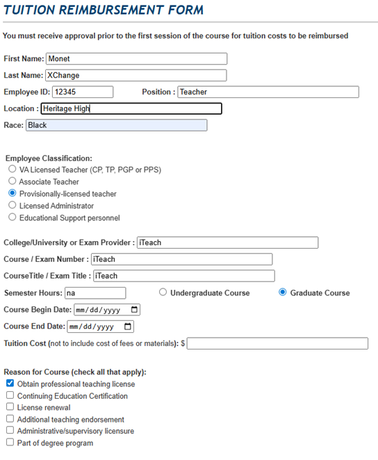 NNPS iteach Tuition Reimbursement Form Example
